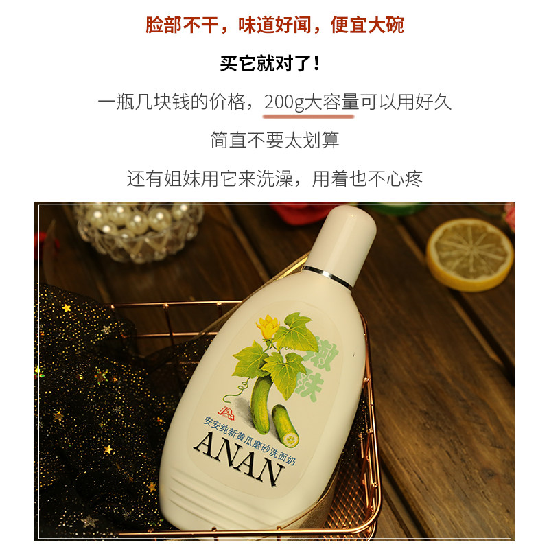 Anan cucumber scrub facial cleanser 200g skin rejuvenation facial cleanser National skin care products veteran non-bubble mild men and women