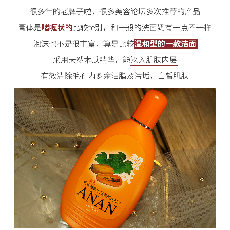 Anan Papaya beauty facial cleanser 200g skin moisturizing mild facial cleanser refreshing oil control skin care woman