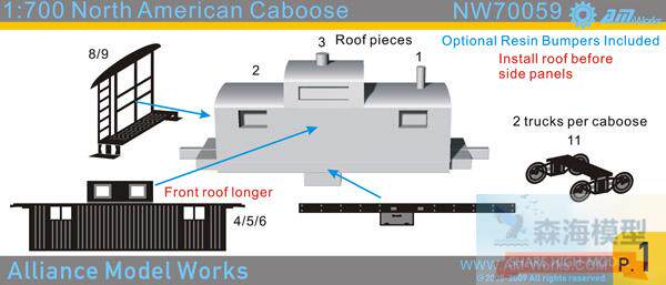 AM-WORKS NW70059 1 700 World War II ERA American Railroad Caboose (Can make 3 cars)