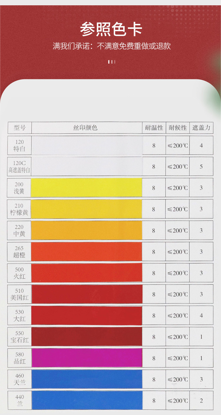 120 Special White 710 Special Black 200 Light Yellow 210 Lemon Yellow 210 Medium Yellow 265 Orange Red 320 Green 350 Tred Green 400 Super Blue 440 Blue 460 Day Blue 495 Purple