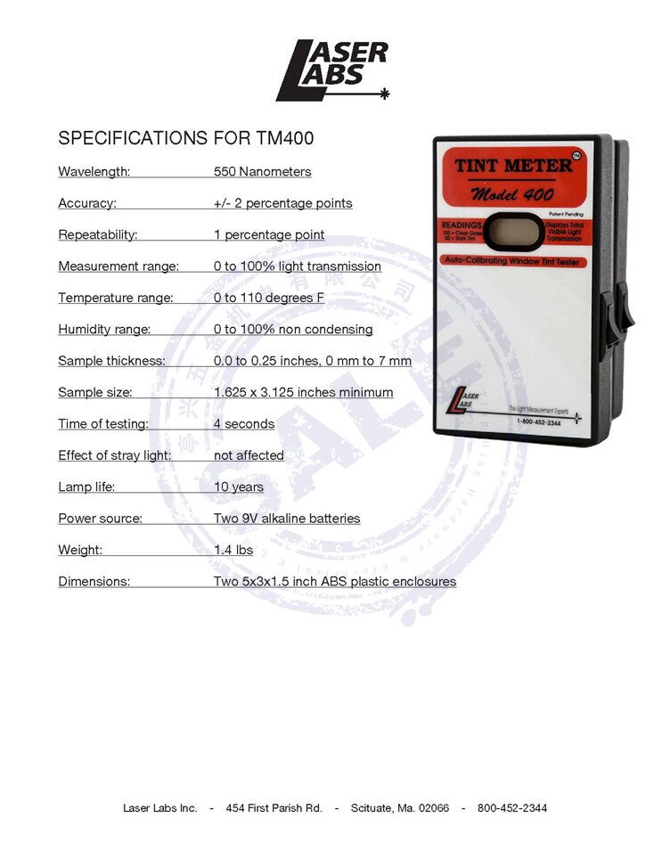 American laser-labs TM400 Automotive glass transmittance tester Portable light flux instrument