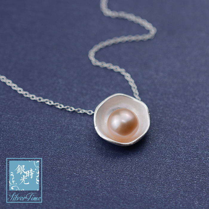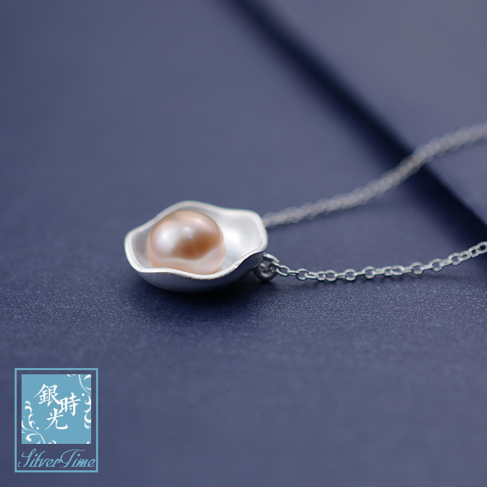 Designer custom made of S925 silver pure handmade flower leaf nursery pearl necklace with lotus leaf dew pendant trellis