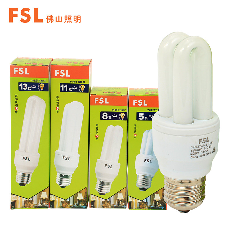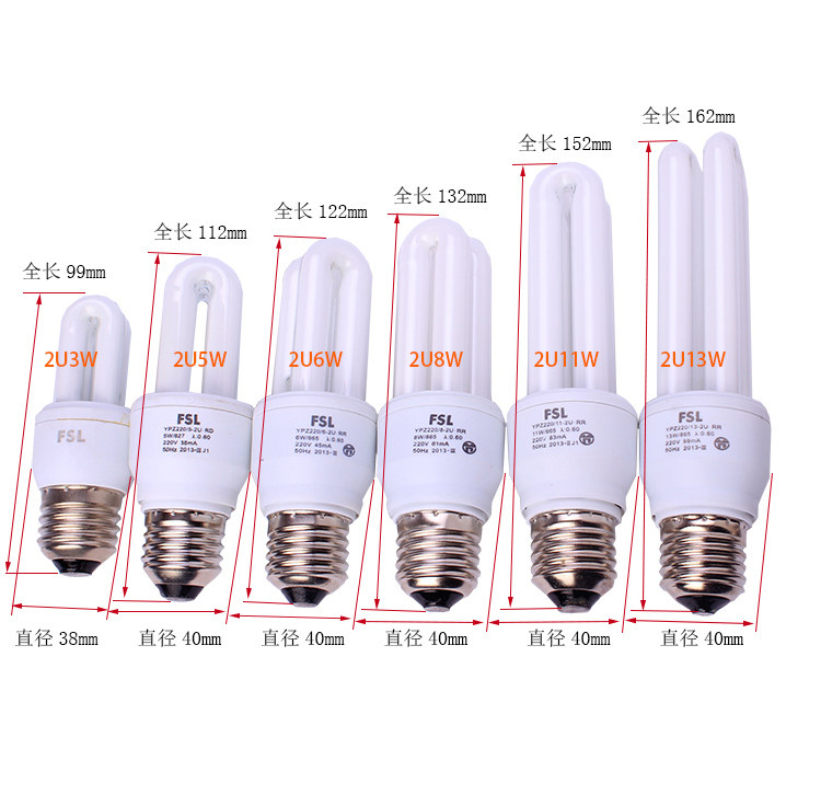 Foshan lighting energy-saving bulb 2U shape E27 screw light source 3U super bright spiral household yellow white light 5W13W sale
