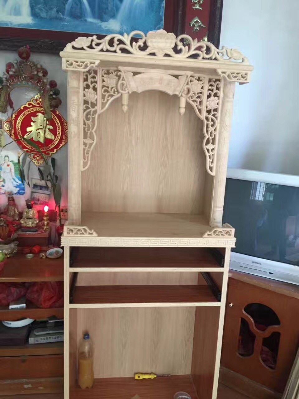 Custom Dongyang wood carving shrine decorative decal Flower God table Solid wood decorative decal multi-piece set