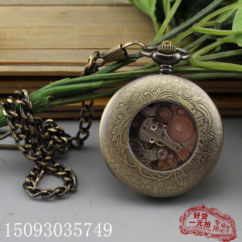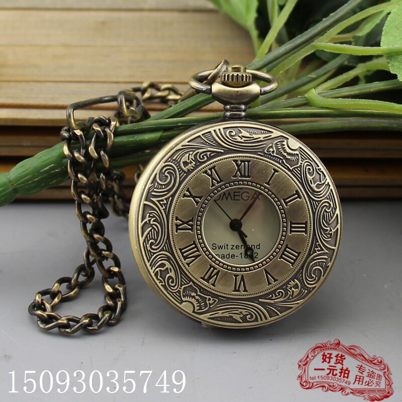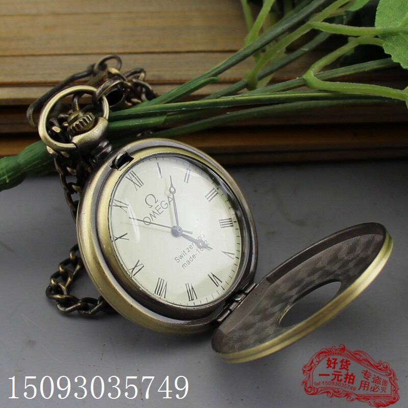 Antiquities Miscellaneous collection of gifts pure copper mechanical table Omega pocket form open retro - bosom table 1