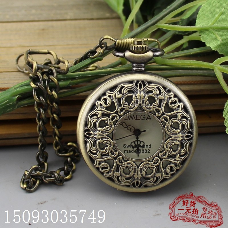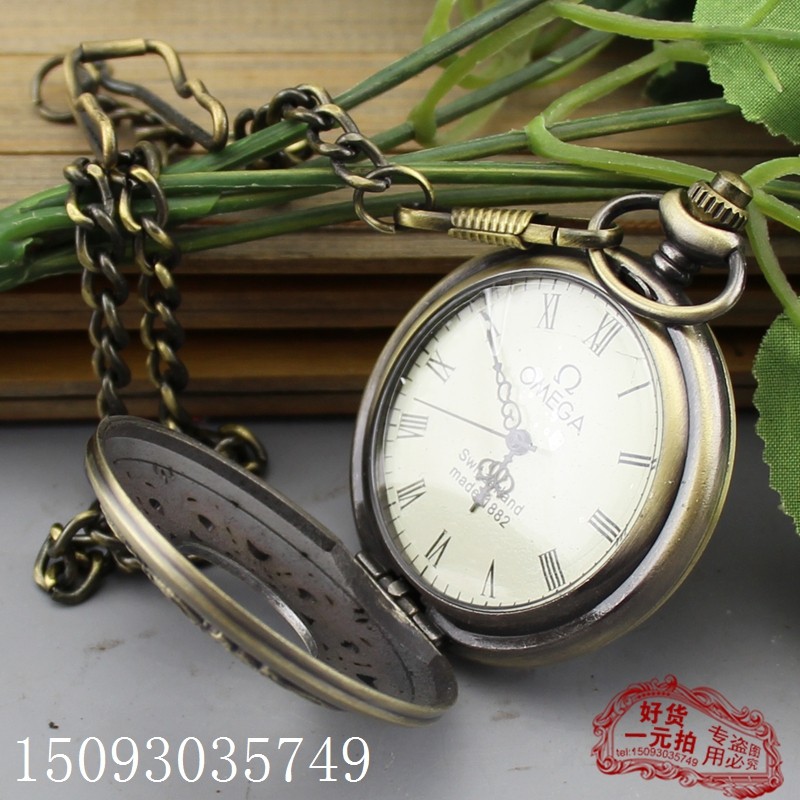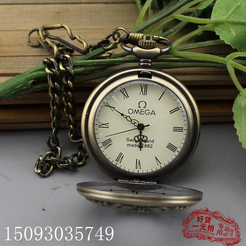 Antique Miscellaneous Collection Exquisite Gift Pure Copper Mechanical Watch Omega Pocket Form Open Retro Pocket Watch New Product