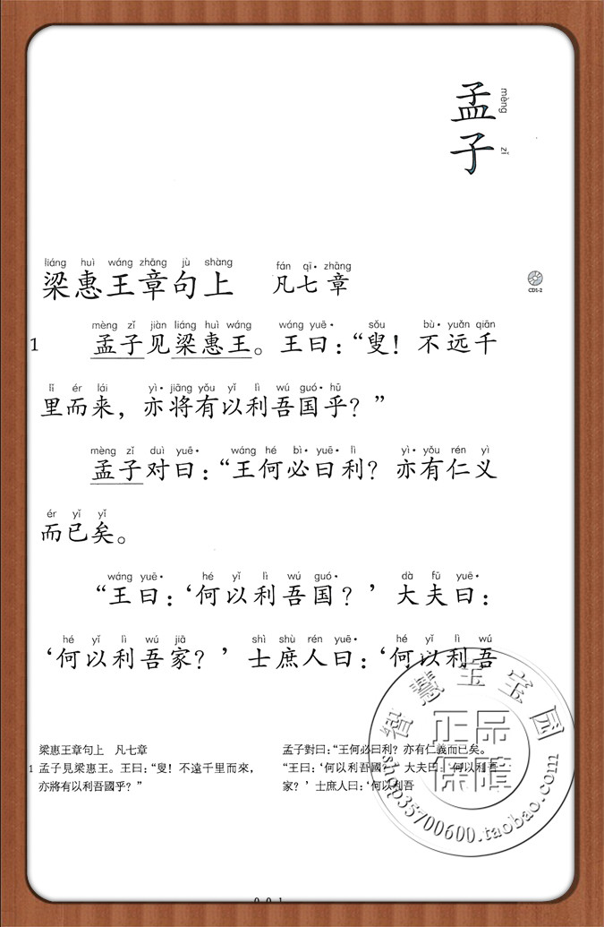 Wang Caigui loves reading the scriptures, Mencius, simplified and traditional contrasting large-character phonetics, collection edition, Beijing Wenli Academy genuine