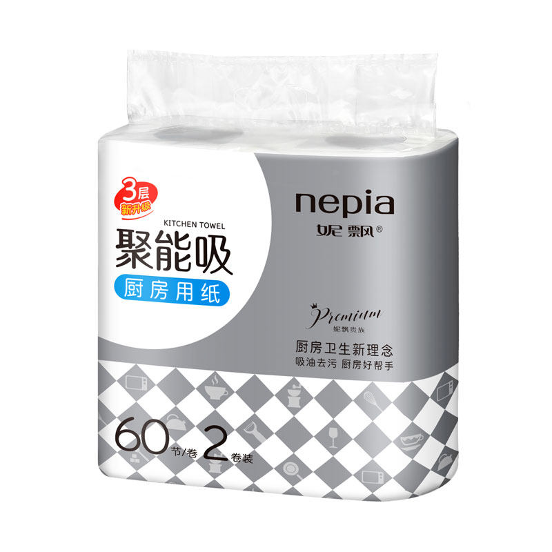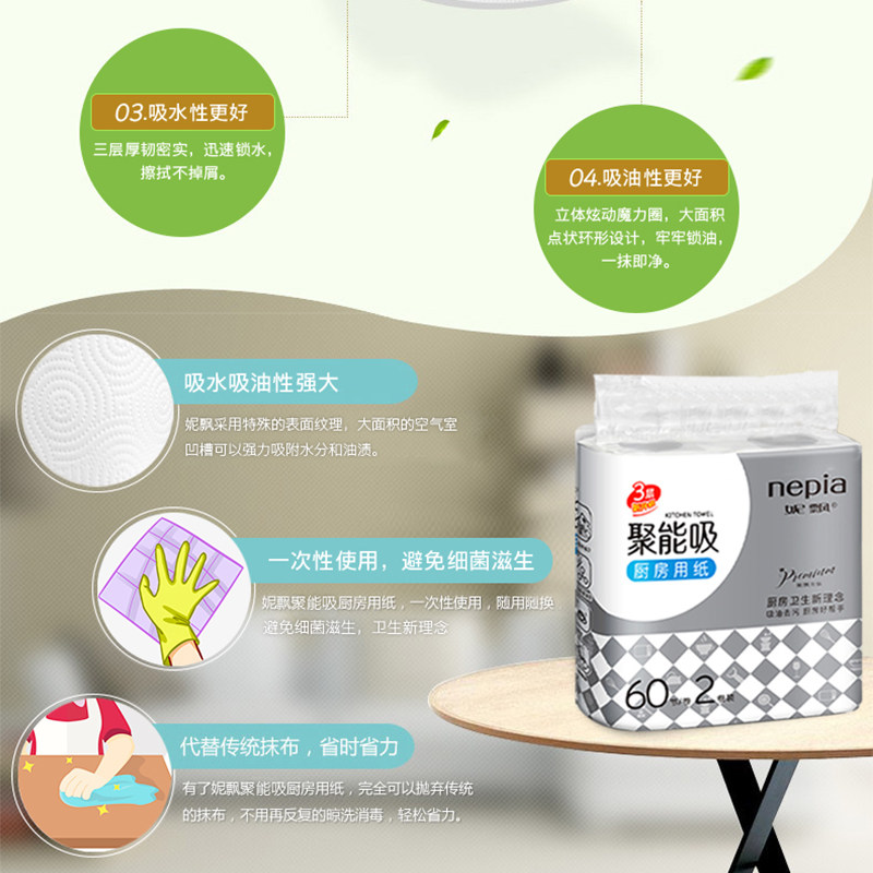 nepia kitchen paper towel kitchen paper towel oil absorbent kitchen cleaning roll toilet paper 3 layers 60 sections * 2 rolls 1 lift