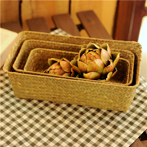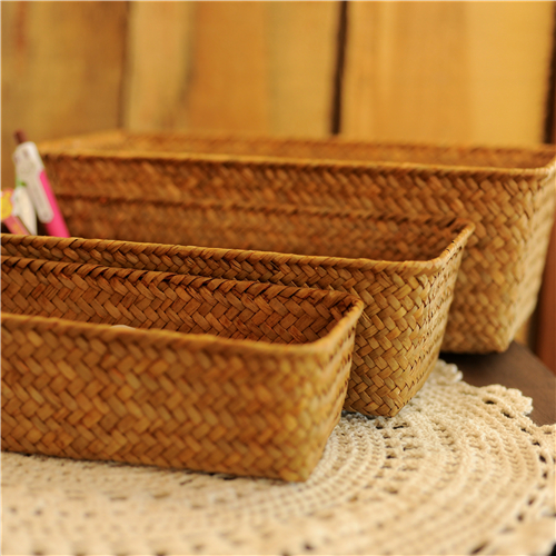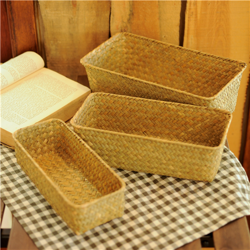 Straw bamboo storage basket woven storage basket storage blue rattan small mini desktop wardrobe socks storage box