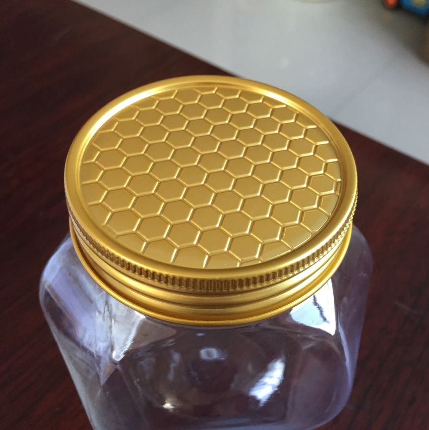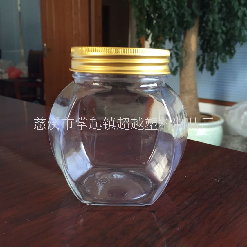 500g hexagonal honey bottle, plastic bottle, PET transparent jar, golden honeycomb aluminum cap (LG032-1)