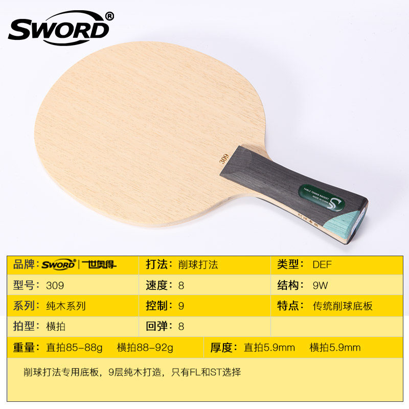Sword Sei Ogot Ping-pong Bottom Plate Pure Wood Series 309 Sharpened Ping-pong Table Tennis Board Table Tennis Racket Bottom Plate