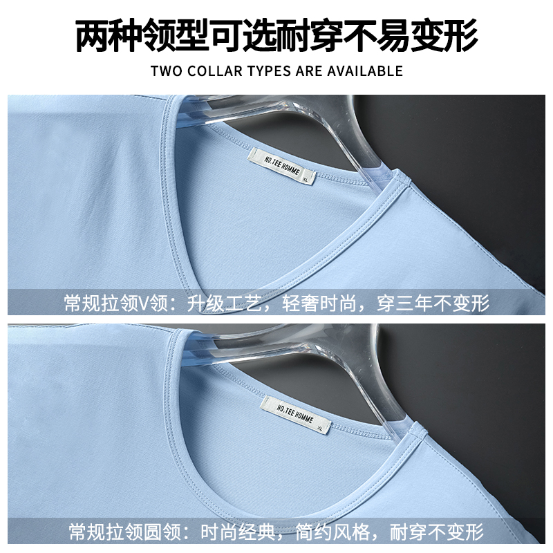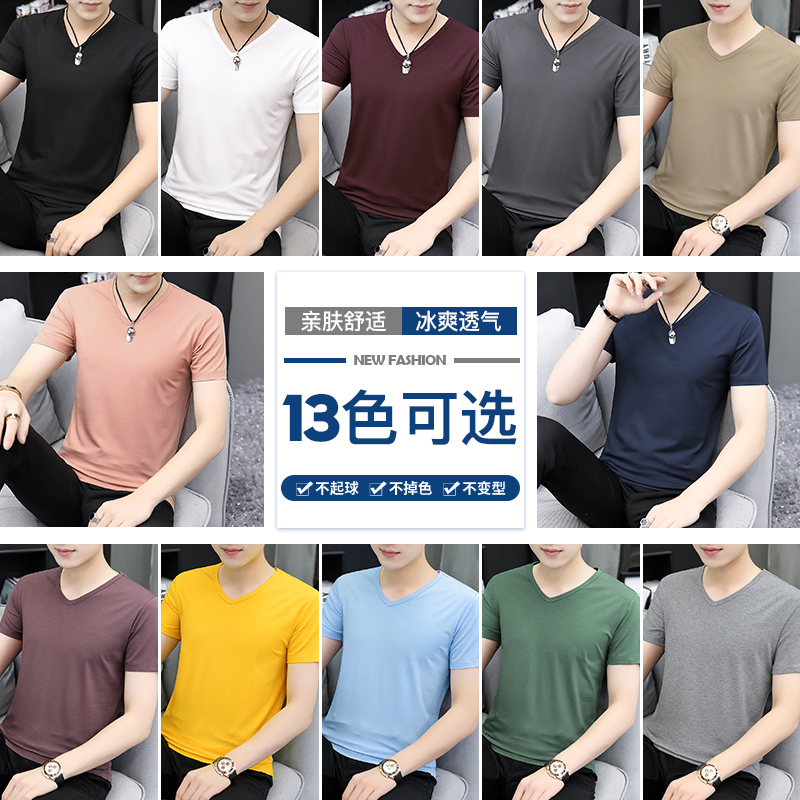 2 pieces) Modale men's short sleeve T-shirt V collar pure color grey trend with ice silk half sleeves tight fit
