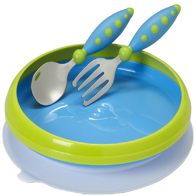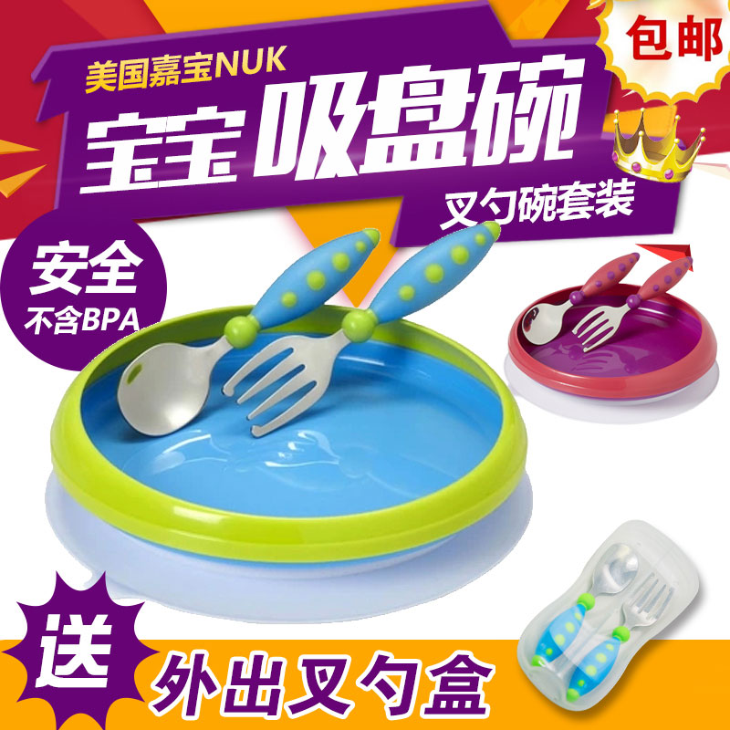 American nuk children's dinner plate tableware baby meal training bowl spoon set baby anti-fall suction cup bowl complementary food bowl