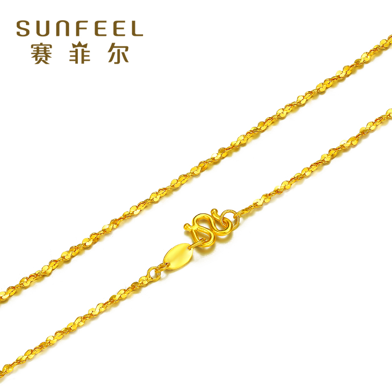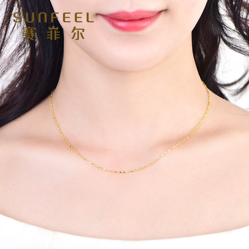 Saifir gold necklace foot gold 999 9 necklace finer full Star temperament 100 Lapped Lock Bone Chain Gift