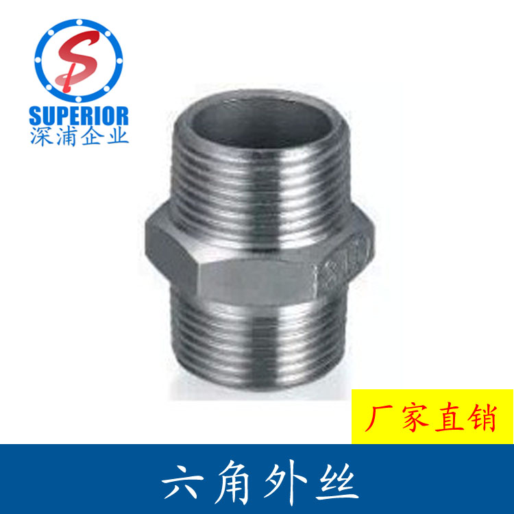 304 stainless steel outer wire direct head hexagonal outer wire double male screw internal straight-through external threaded pipe joint 6 4 points