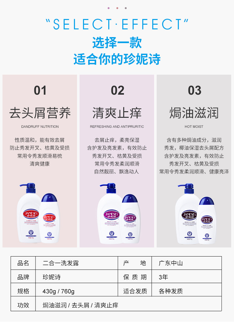 Jenny poem 760g Two-in-one shampoo shampoo with dandruff to stop itching and moisturize the oiled oil clear and smooth and smooth moisturizing