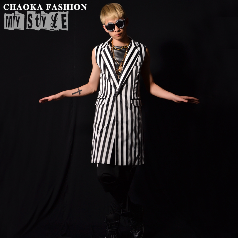 Exclusive black and white stripes supervisory long vest party stage club Bar singer performing suit