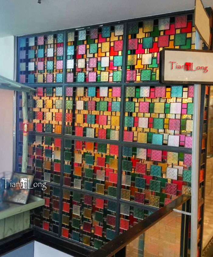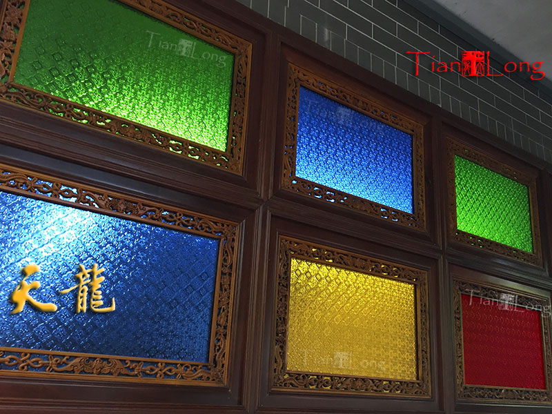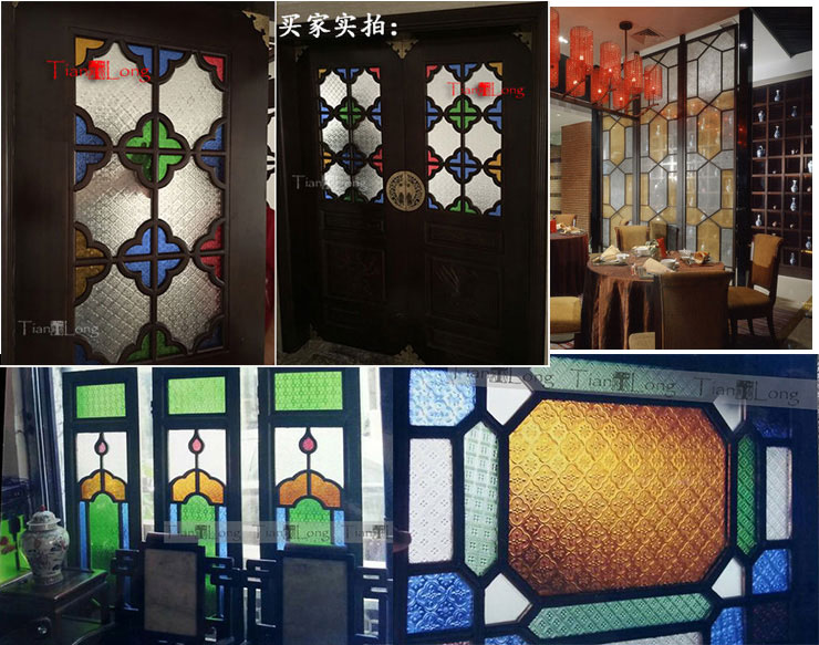 Manchuria window begonia flower color embossed glass fibrosis Xiguan doors and windows old Chinese screen entrance partition customization