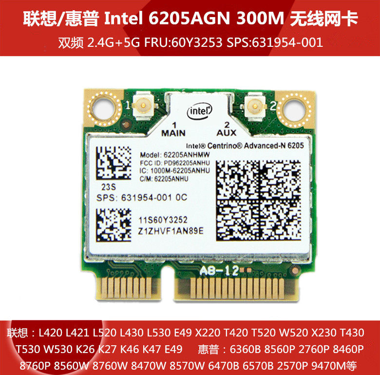 L420 L420 L421 L421 L430 L430 E49 E49 INTEL 6205 Wireless Card Dual-frequency 60Y3253-Taoba