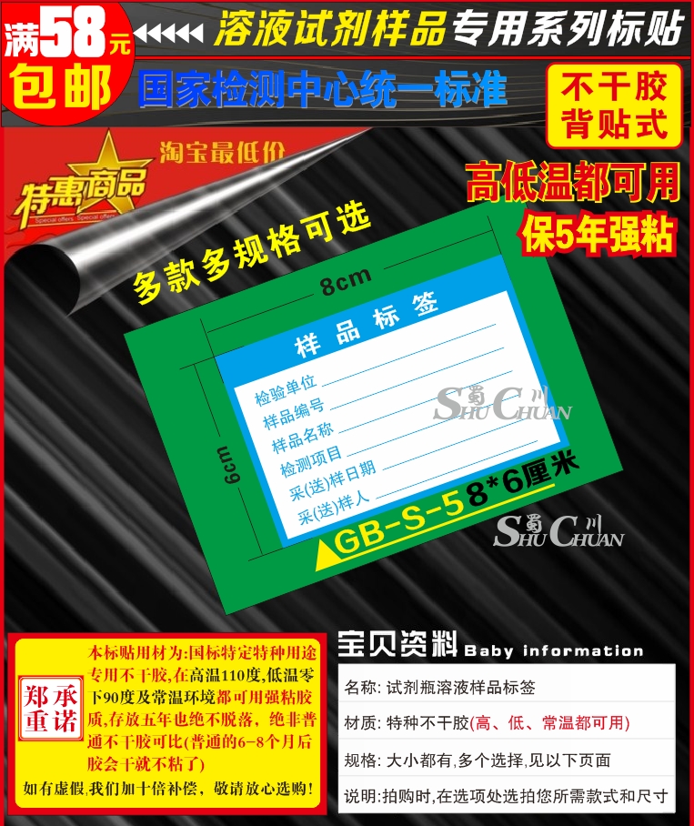 Black blue 05#蓝色样品标籤6x4cm100个5元05# blue sample mark 6x4cm waterproof 100 05#蓝色样品标8x6cm100