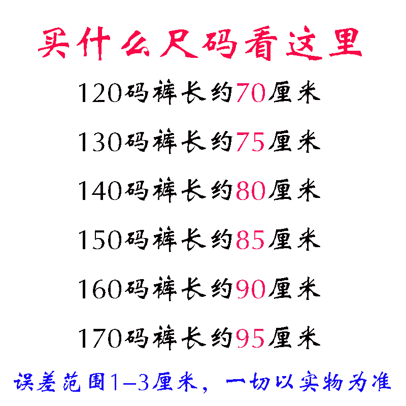 120 size length about 65cm 130 size length length about 70cm 140 size length about 75cm 150 size length about 80cm 160 size length length about 85cm 170 size pants