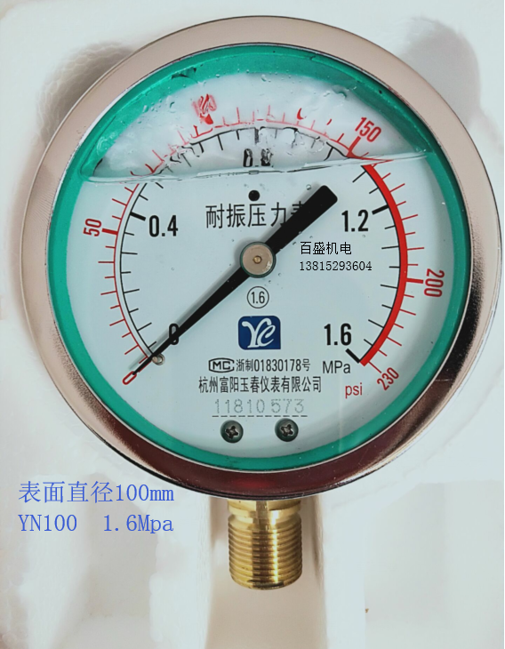 YN100 VIBRATION-RESISTANT OIL-IMMERSED ANTI-VIBRATION AND ANTI-VIBRATION PRESSURE GAUGE 1 1 6 2 5 40 60MPA Fuyang Yucun, Hangzhou