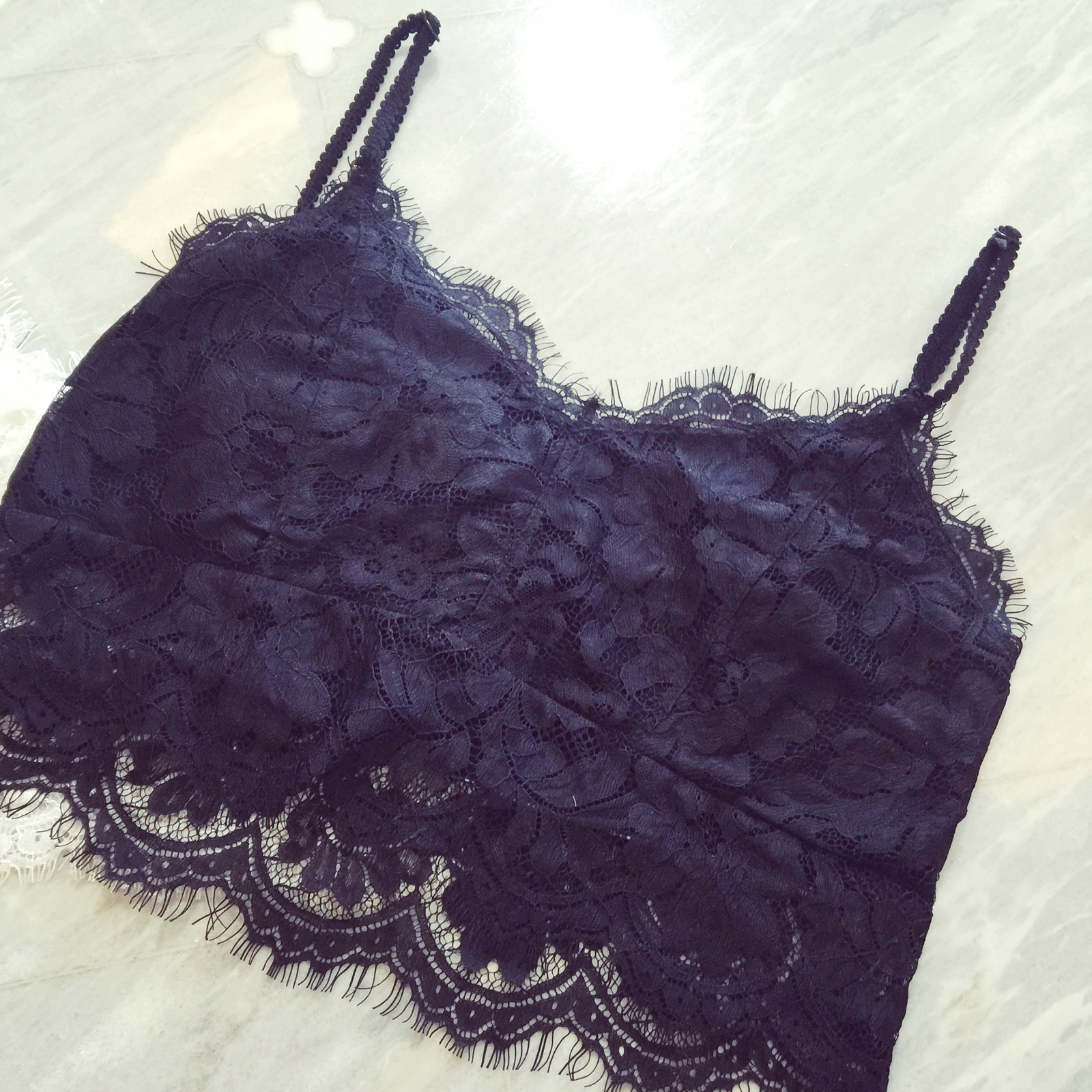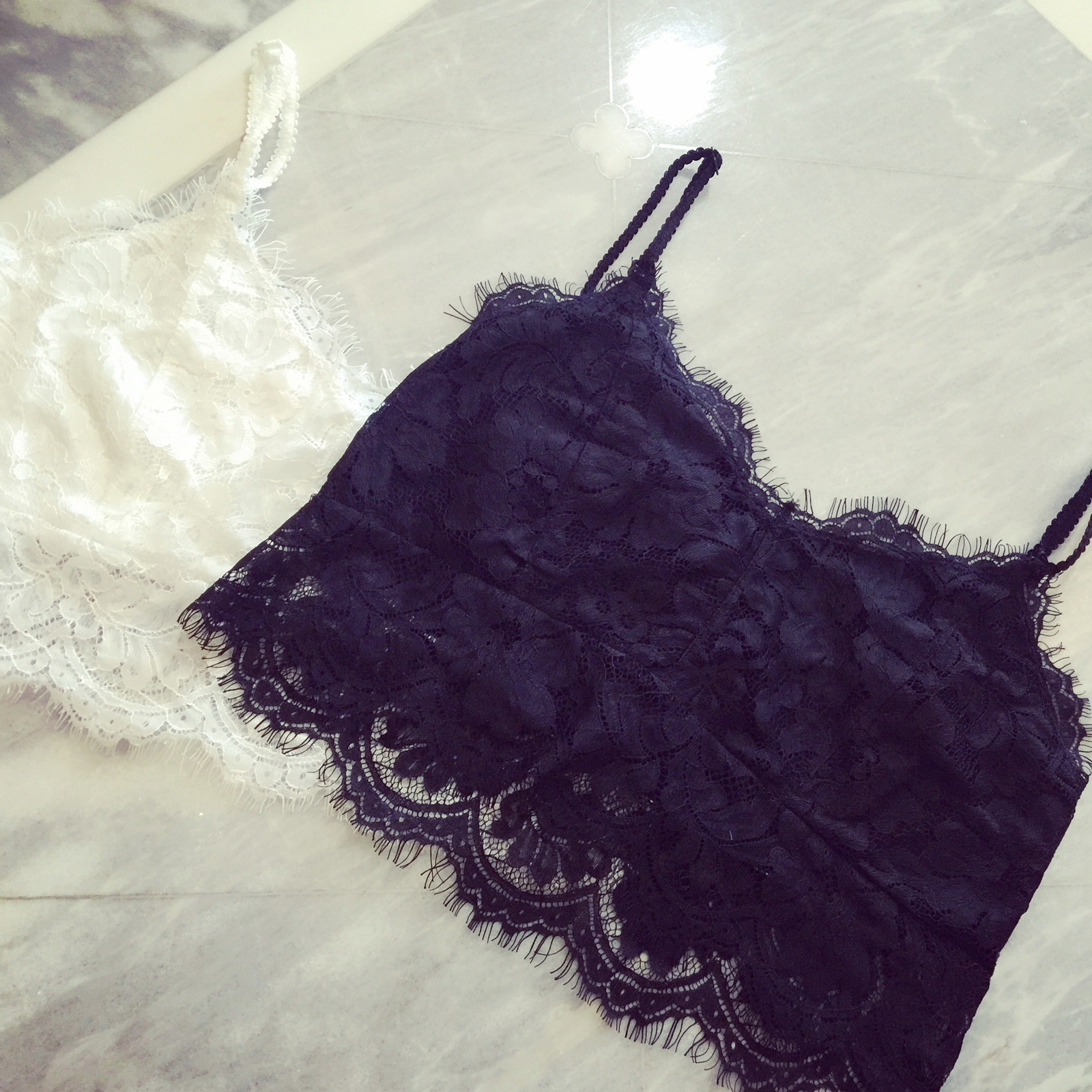 2022 Spring Autumn Season Women's Eyelash Lace Sleeveless Vest Anti-Walk Light Smear Wrap Chest Shoulder Strap Adjustable Black White