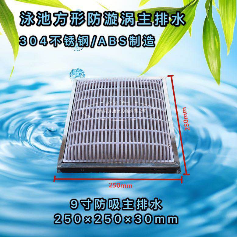 Hot spring swimming pool equipment ABS pool bottom anti-vortex main drainer square stainless steel anti-suction drain outlet corrosion-resistant