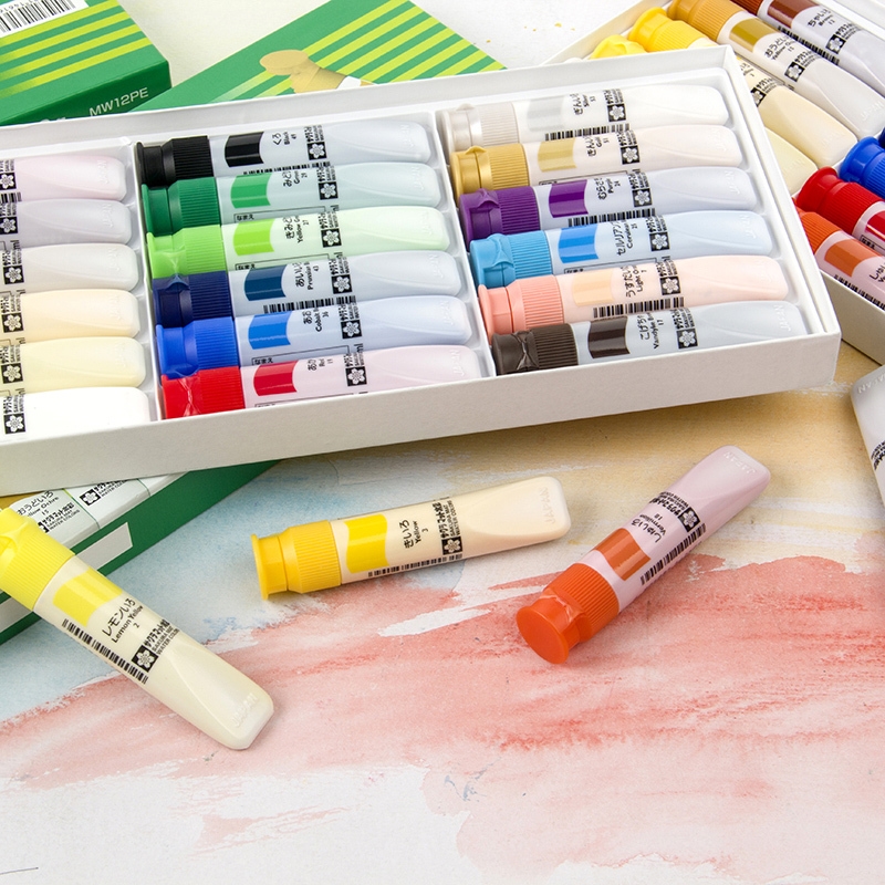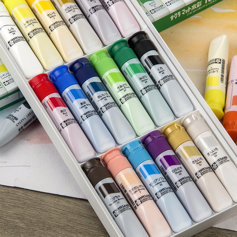 Japanese cherry blossom sakura transparent watercolor pigment 12ml single - branch set gold and silver 24 color comic drawing effect drawing