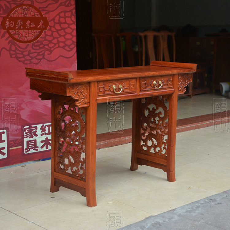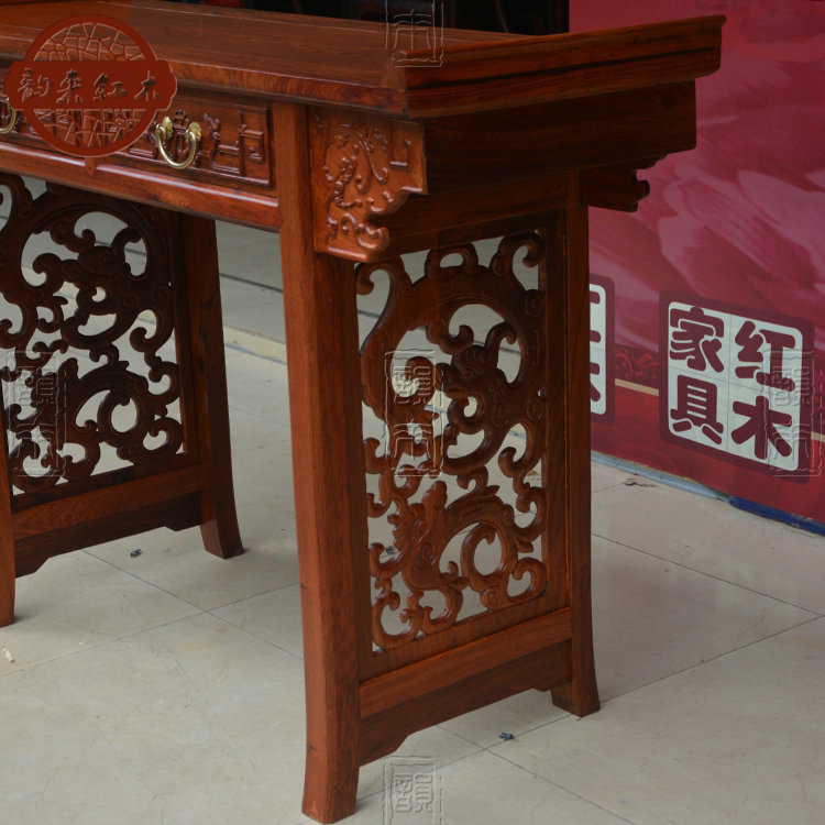 (Yunlai) Burmese rosewood carved hollowed-out top table table Chinese antique mahogany furniture