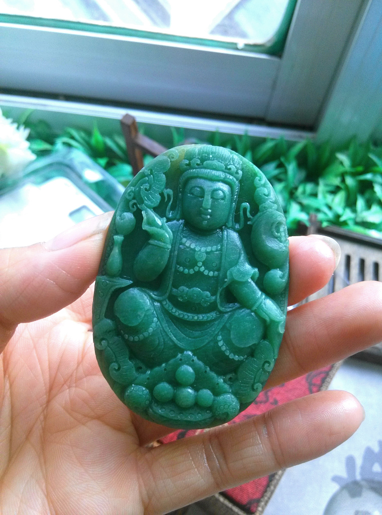 It has been made to appreciate the natural unique jade South Yangxing Yuanyu Guanyin is full of green and ruffled hibiscus red pendant