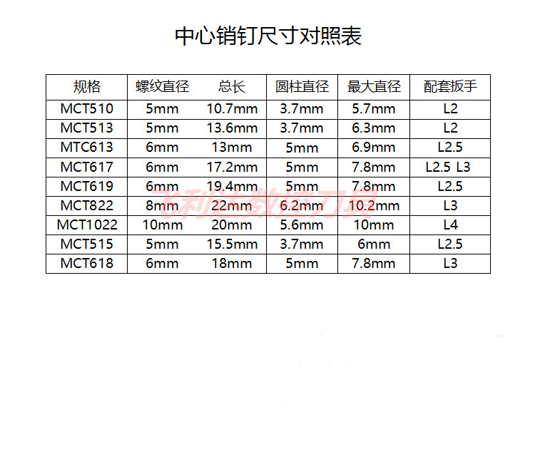 Tools Center Pin Positioning Pin CTM510 513 515 613 617 628 822 1022