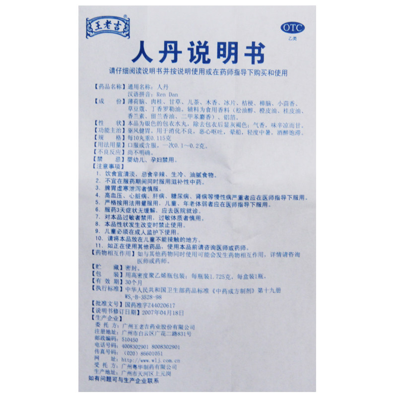 Wang Laoji Ren Dan Motion sickness medicine Motion sickness medicine Ren Dan Heat stroke Ren Dan pill Heat stroke medicine Anti-heat medicine
