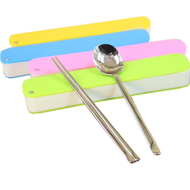 Stainless steel tableware set Spoon chopsticks two-piece set Travel out students environmental protection portable travel tableware box