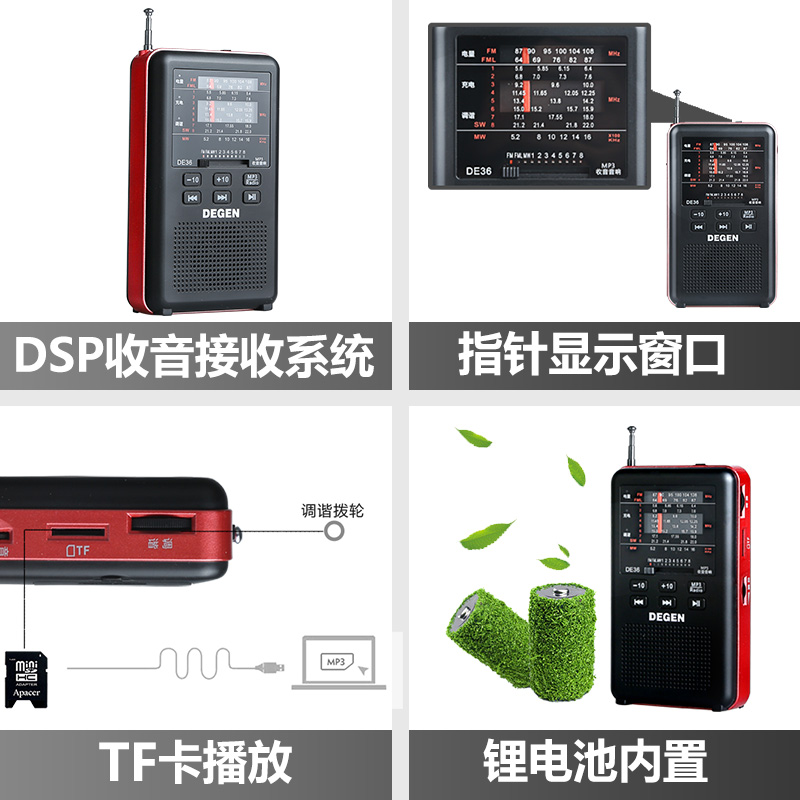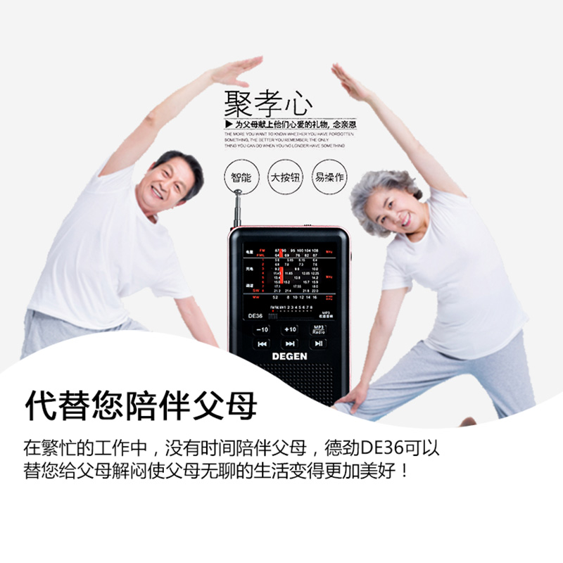 Degen de force DE36 full band card radio for elderly morning practice portable broadcast fm FM radio semiconductor rechargeable lithium power radio filial piety elders parent gift