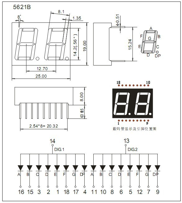 0 5 inch 2-bit LTD5321AP double eight 5621B two-bit glow tube red co-yang 100pcs MOQ