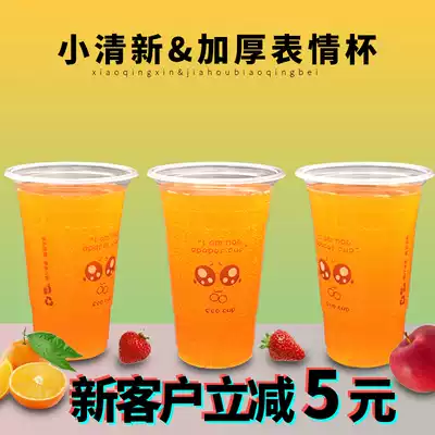 Thick milk tea cup disposable plastic cup pearl hot and cold juice cup cute expression packing Cup 500 700
