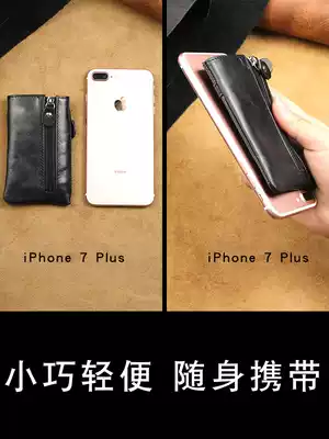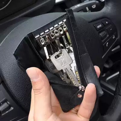 Male leather large capacity simple key bag card bag two-in-one key key bag Mini small storage key bag home