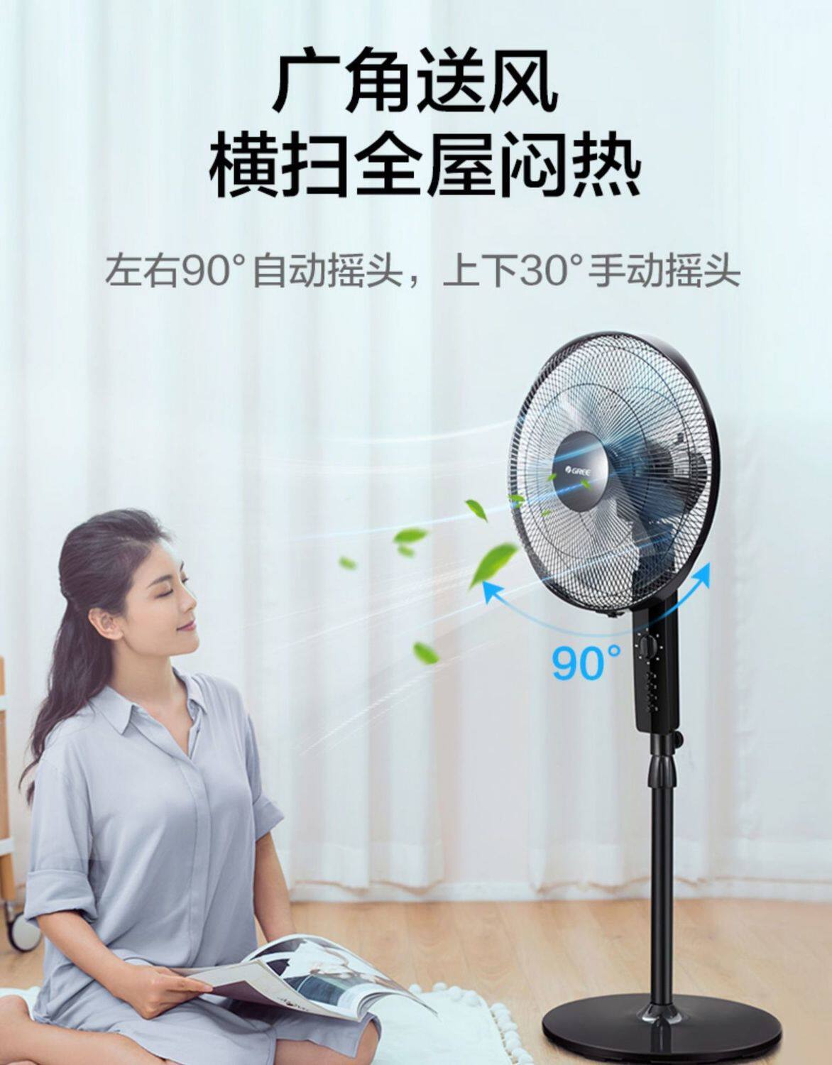 Gree electric fan household desktop vertical dormitory shaking head large wind wide-angle silent floor fan FD-4012-WG