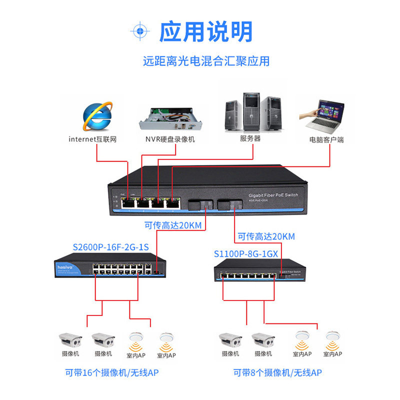 hasivo2 Optical 4 Electric Fiber POE Switch 20KM Long Distance Transmission Transceiver S1100P-4G-2GX