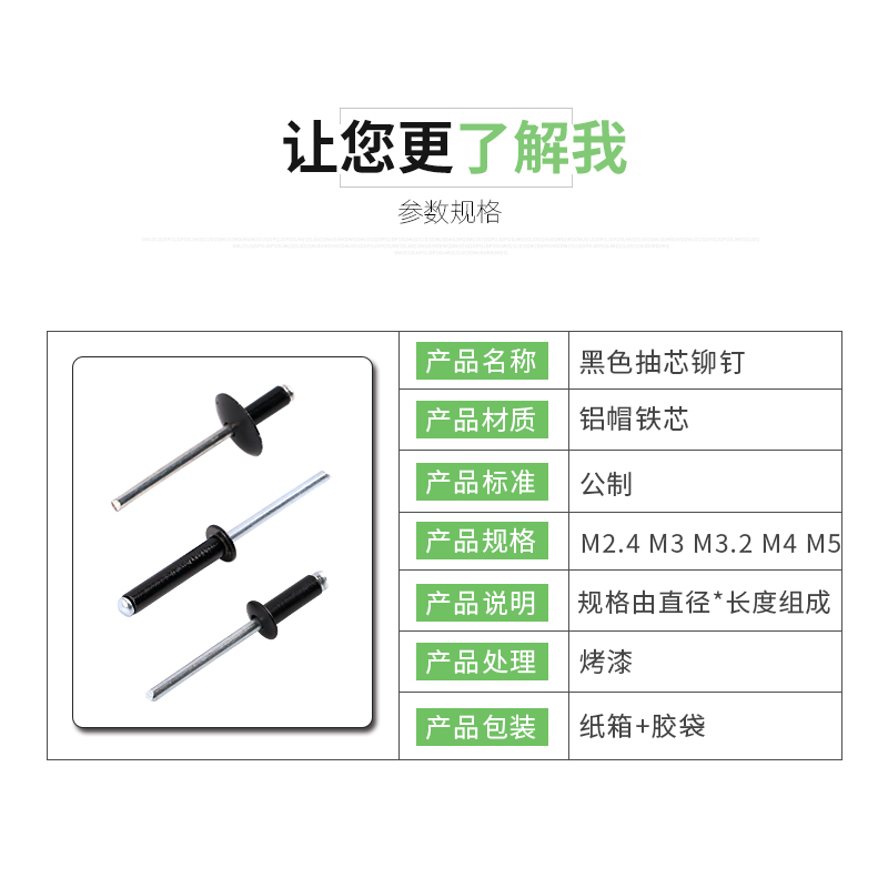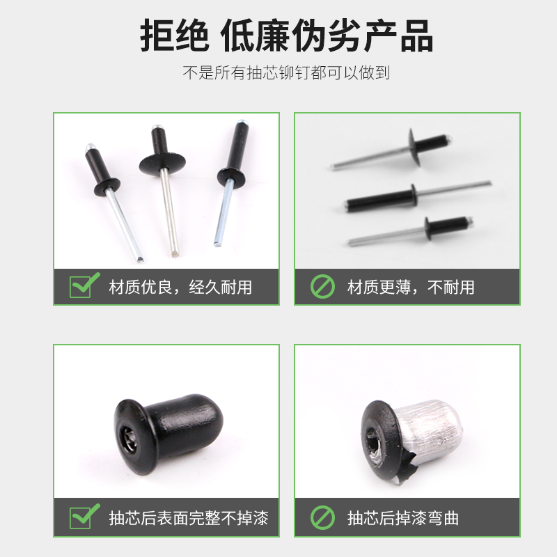 Black aluminium core rivet color heart-pulling aluminum pull nail 2.4 3.2 4