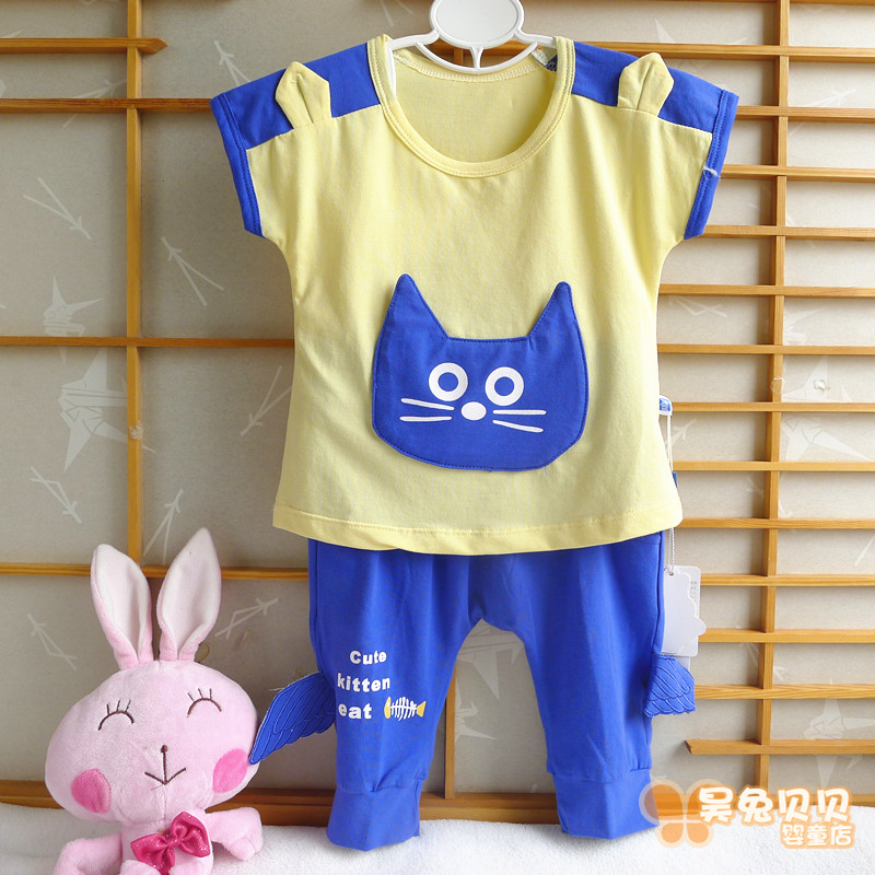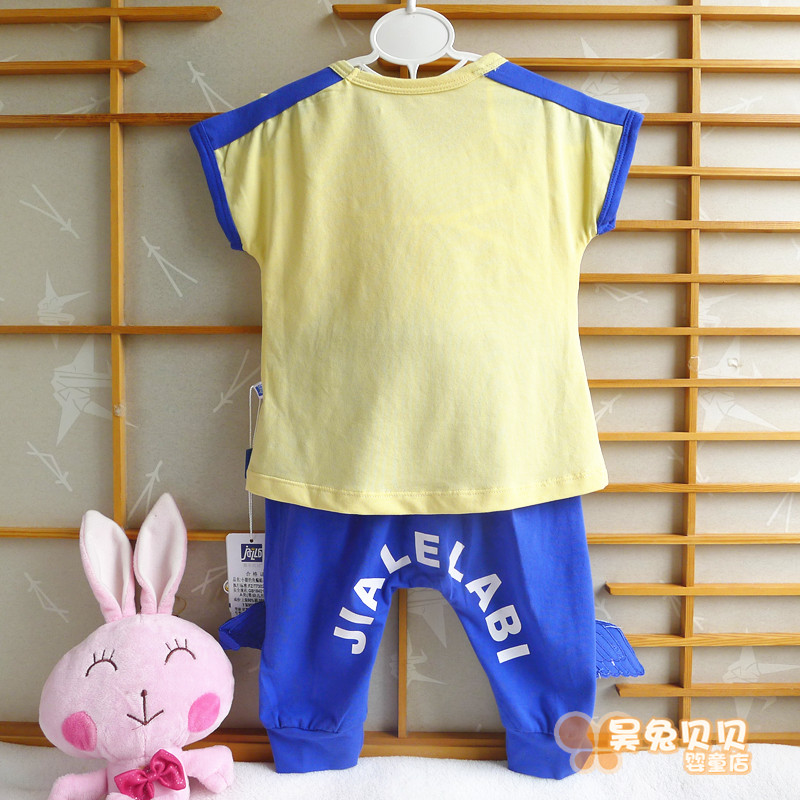 Jiale Rabbi summer baby boy short-sleeved top pants shoulder open two-piece cotton summer dress 7390