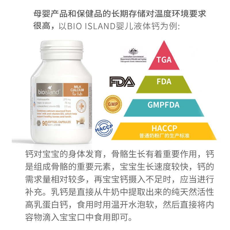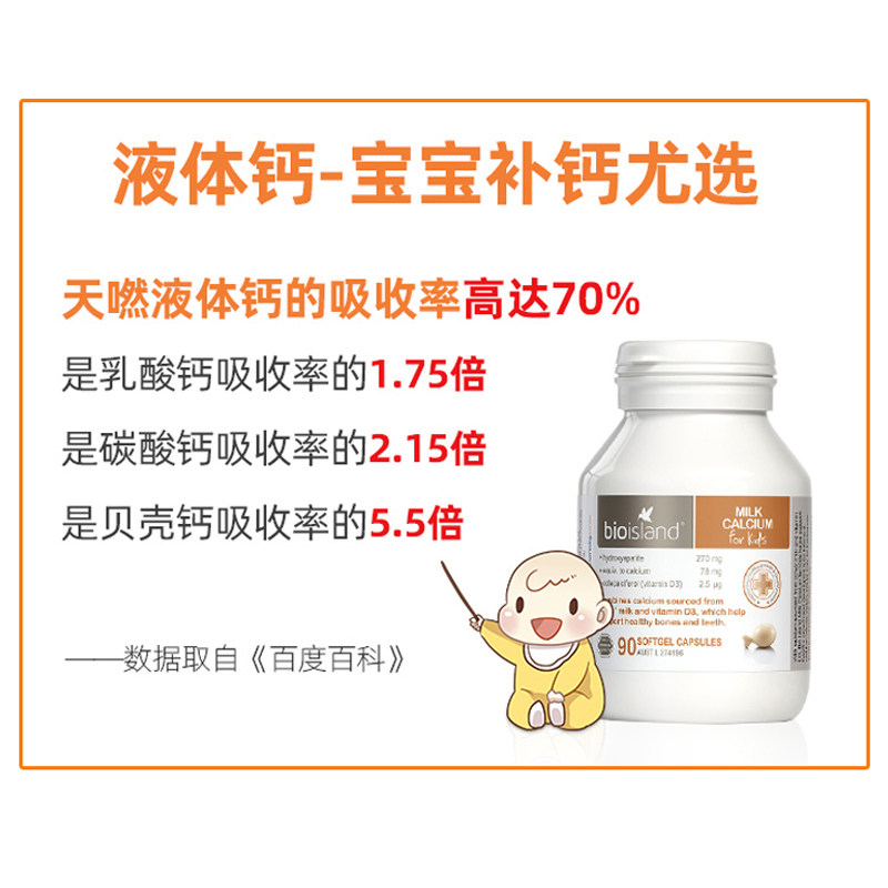 Australia bio island milk calcium baby baby children calcium supplement liquid calcium VD calcium tablets soft small fish capsules 90 capsules