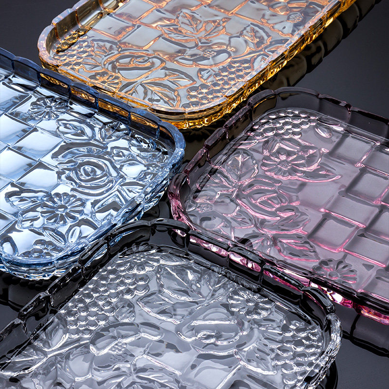 Ouwei Creative Tea Tray Glass Fruit Tray Living Room Creative European Large Tray Candy Tray Color Dried Fruit Tray