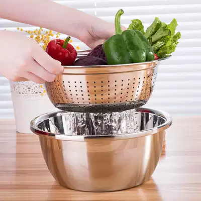 Round stainless steel leaking basin washing basin washing basket leaking basin thickening drain basin large Bowl male multi-purpose Basin