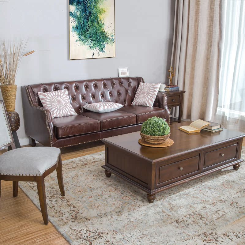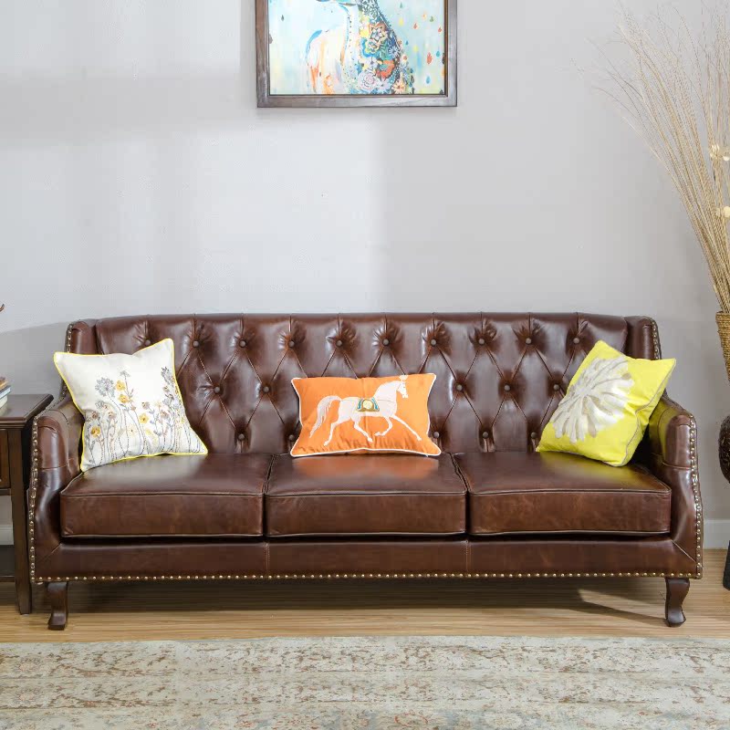 American leather sofa small apartment leather art first layer leather sofa combination three-person single retro living room furniture