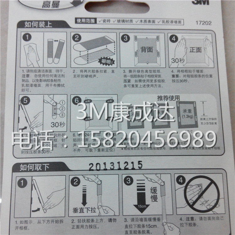 3M Easy-to-tear easily buckle no-mark photo-frame large number magic button free of nail-hook high man no-mark magic buckle
