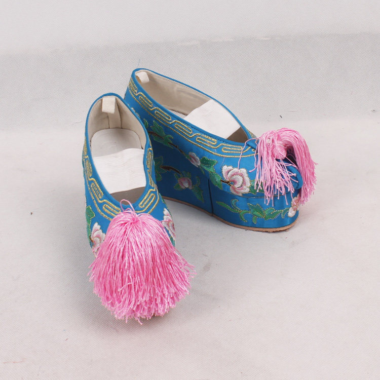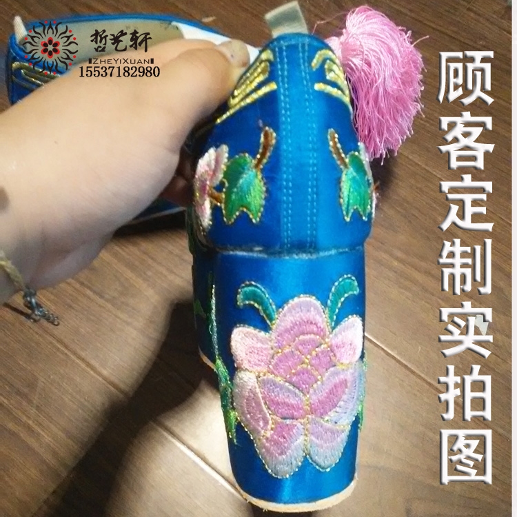 Beijing drama drama bottom up high color shoes ancient wedding shoes Xiuhe bride slope and high embroidered color shoes