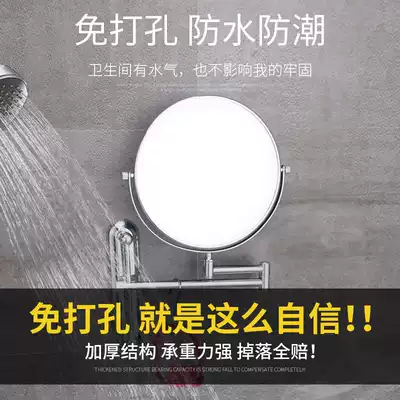 Bathroom makeup mirror wall-mounted movable mirror wall-mounted wall-mounted non-perforated folding retractable lift