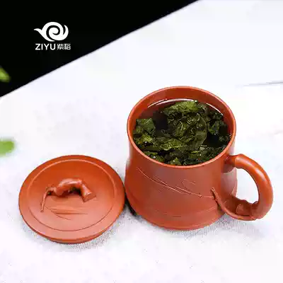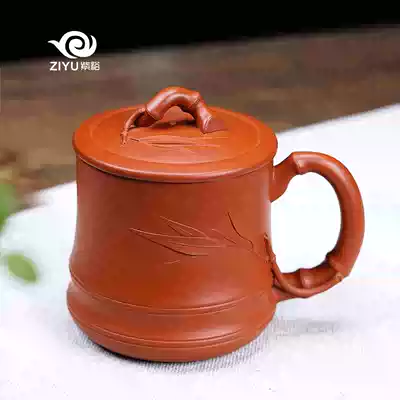 Ziyu purple sand Yixing cup tea set handmade purple sand Cup Cup Cup Cup Cup Vermilion double line bamboo leaf cup